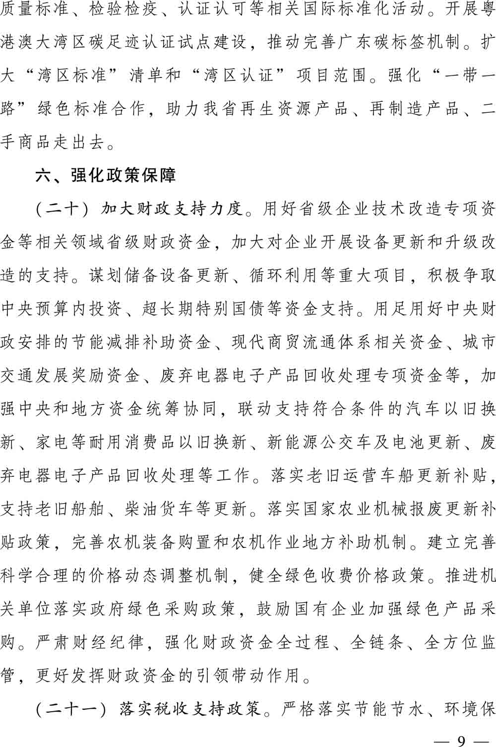 廣東省人民政府關于印發廣東省推動大規模設備更新和消費品以舊換新實施方案的通知(粵府[2024] 27號)